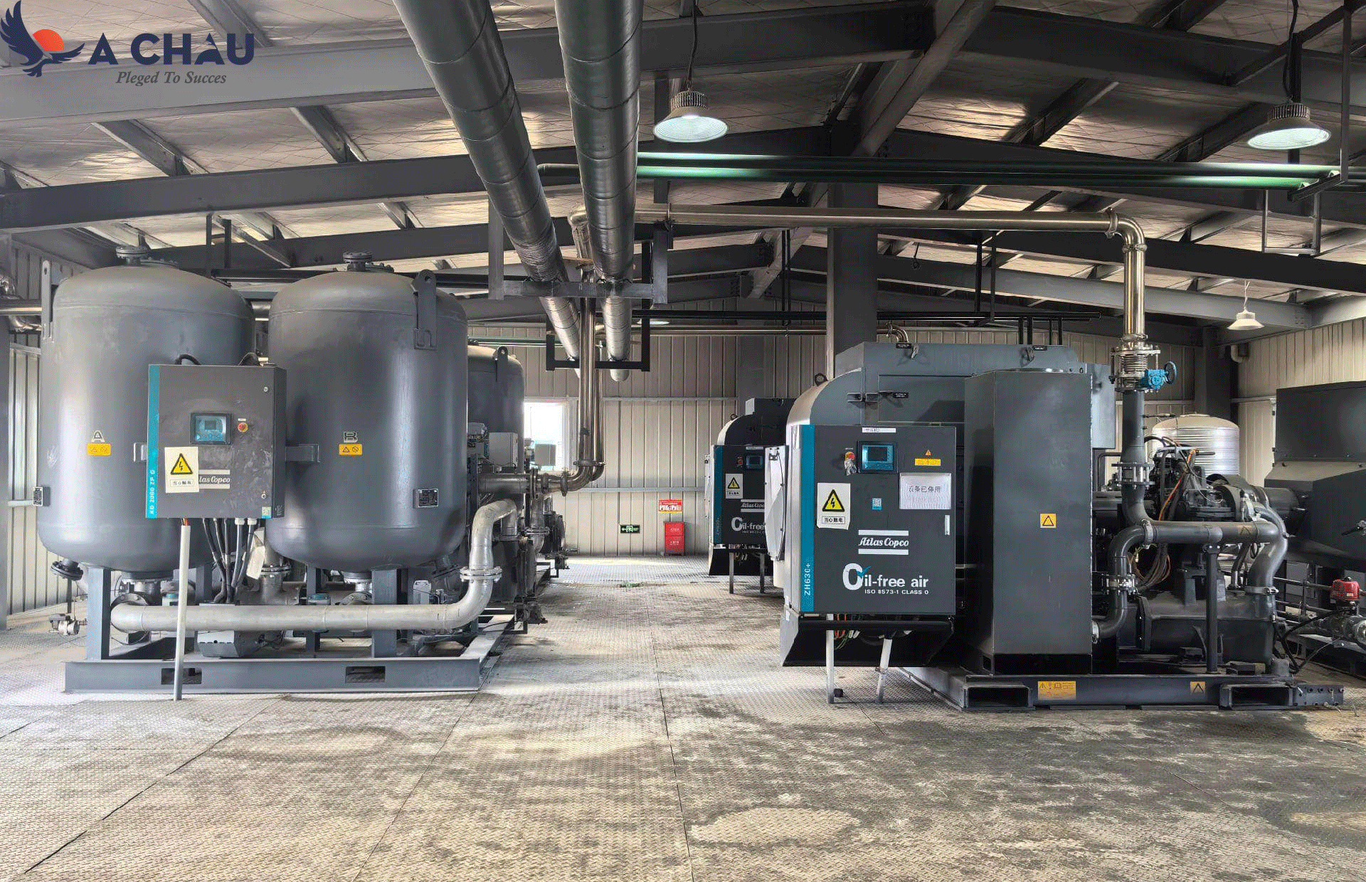 Máy nén khí đóng vai trò nguồn năng lượng chính cho các hệ thống khí nén trong nhà máy.